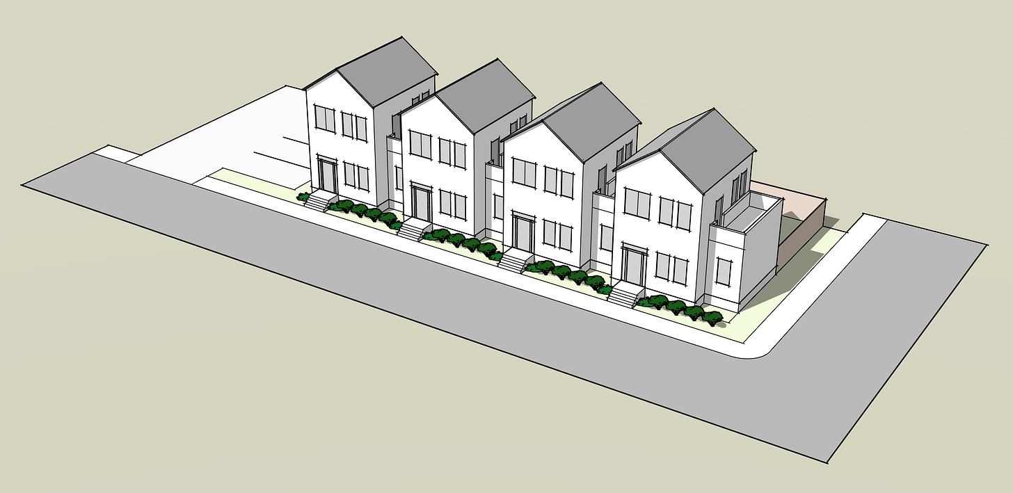 In the first post, I walked through a concrete example using a vacant lot at 3601 Grape Street in Denver. The goal was to build new homes for $400k or less (affordable for Denver’s median income). I concluded that it was possible if we could build four homes on the lot.